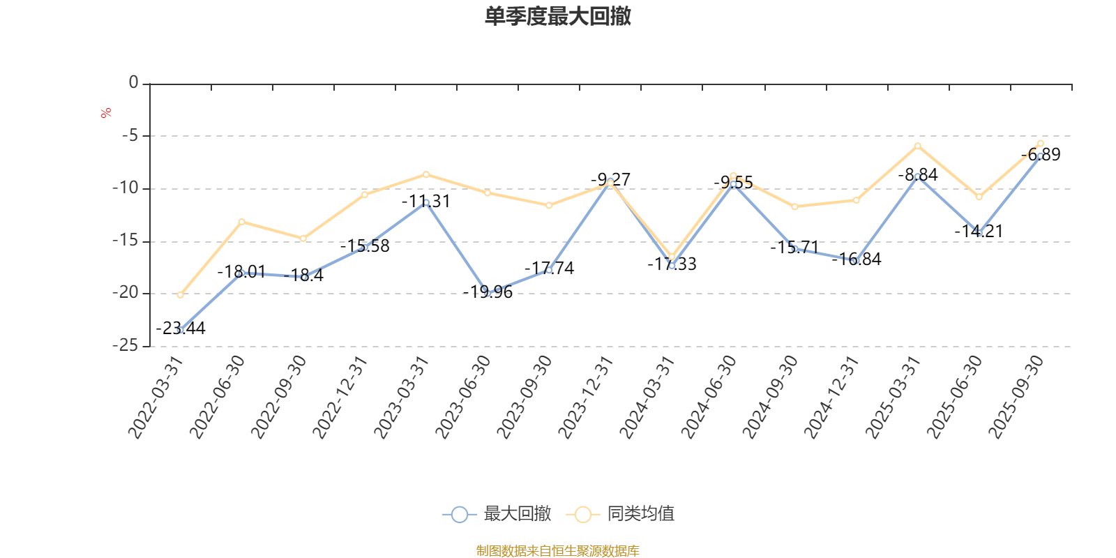 截至10月30日,基金近三年最大回撤为56.92%,同类可比基金排名500/513。单季度最大回撤出现在2022年一季度,为23.44%。