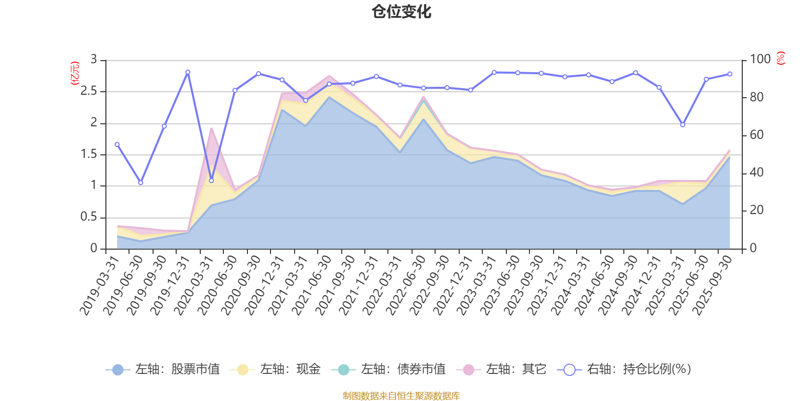 据定期报告数据统计,近三年平均股票仓位为88.61%,同类平均为72.35%。2019年末基金达到93.66%的最高仓位,2019年上半年末最低,为35.09%。