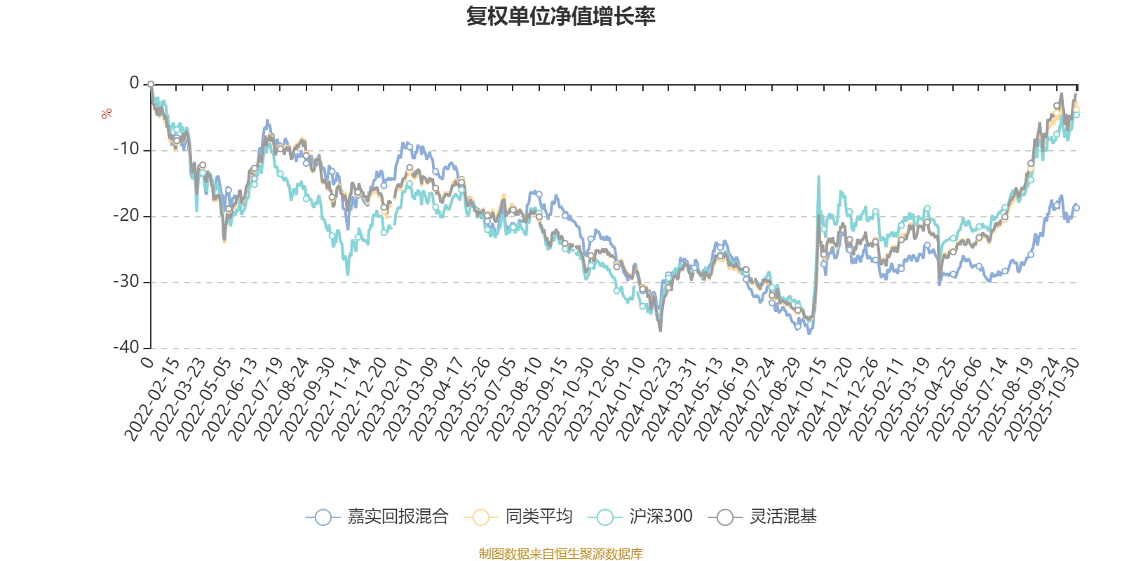 截至10月30日,嘉实回报混合近三个月复权单位净值增长率为11.52%,位于同类可比基金643/1287;近半年复权单位净值增长率为14.40%,位于同类可比基金907/1287;近一年复权单位净值增长率为10.25%,位于同类可比基金974/1287;近三年复权单位净值增长率为3.06%,位于同类可比基金955/1286。