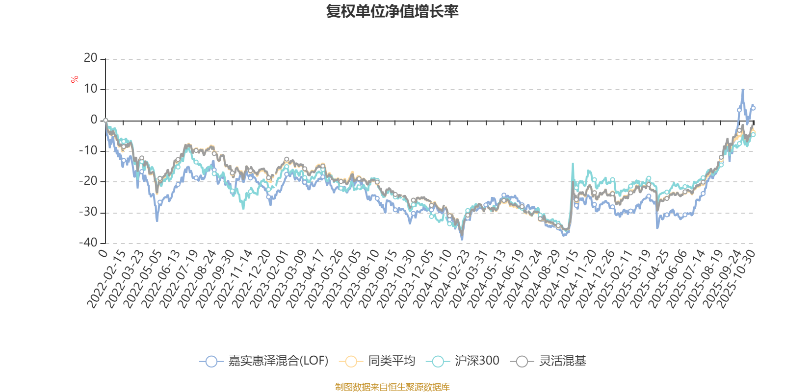 截至10月30日,嘉实惠泽混合(LOF)近三个月复权单位净值增长率为26.62%,位于同类可比基金214/1287;近半年复权单位净值增长率为50.91%,位于同类可比基金157/1287;近一年复权单位净值增长率为41.57%,位于同类可比基金257/1287;近三年复权单位净值增长率为29.62%,位于同类可比基金385/1286。