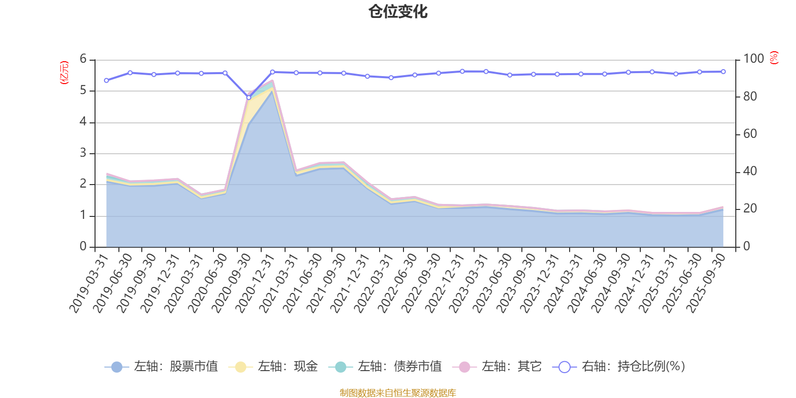 据定期报告数据统计,近三年平均股票仓位为92.9%,同类平均为85.66%。2022年末基金达到93.79%的最高仓位,2020年三季度末最低,为79.78%。