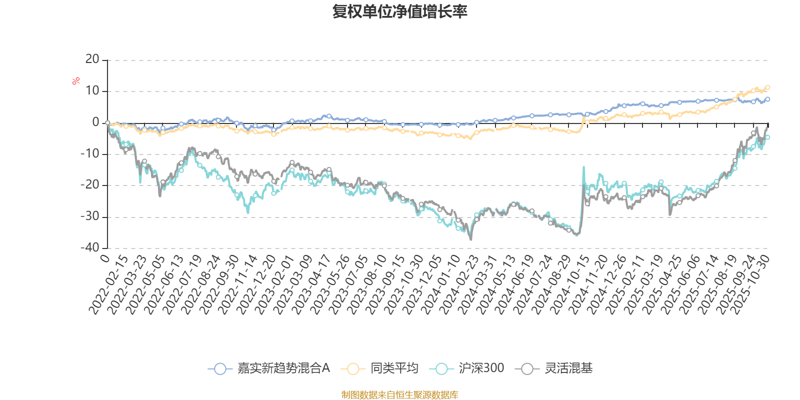 截至10月30日,嘉实新趋势混合A近三个月复权单位净值增长率为0.36%,位于同类可比基金147/167;近半年复权单位净值增长率为0.73%,位于同类可比基金158/167;近一年复权单位净值增长率为4.74%,位于同类可比基金121/167;近三年复权单位净值增长率为9.95%,位于同类可比基金95/167。