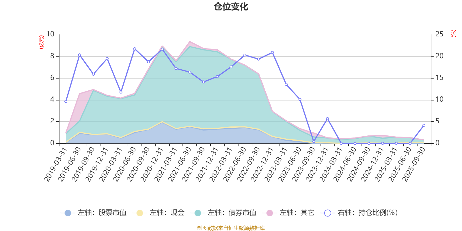 据定期报告数据统计,近三年平均股票仓位为4.57%,同类平均为20.26%。2020年上半年末基金达到21.75%的最高仓位,2023年三季度末最低,为0.43%。