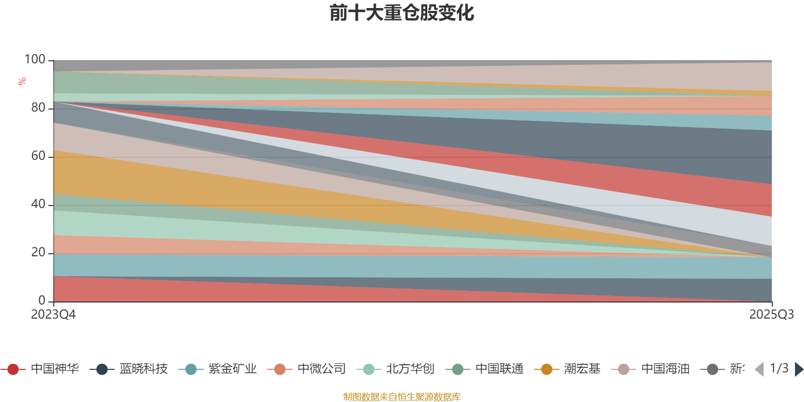该基金持股集中度较高。截至2025年三季度末,基金十大重仓股分别是中矿资源、伟测科技、乐普医疗、富创精密、蓝晓科技、紫金矿业、德赛西威、兴发集团、新华保险、华友钴业。