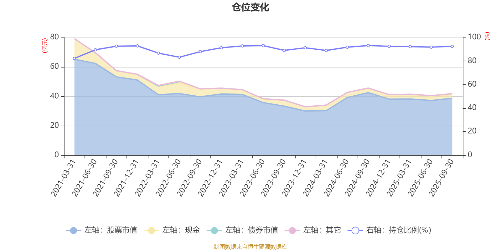 据定期报告数据统计,近三年平均股票仓位为91.7%,同类平均为86.15%。2024年三季度末基金达到93.16%的最高仓位,2021年一季度末最低,为82.27%。