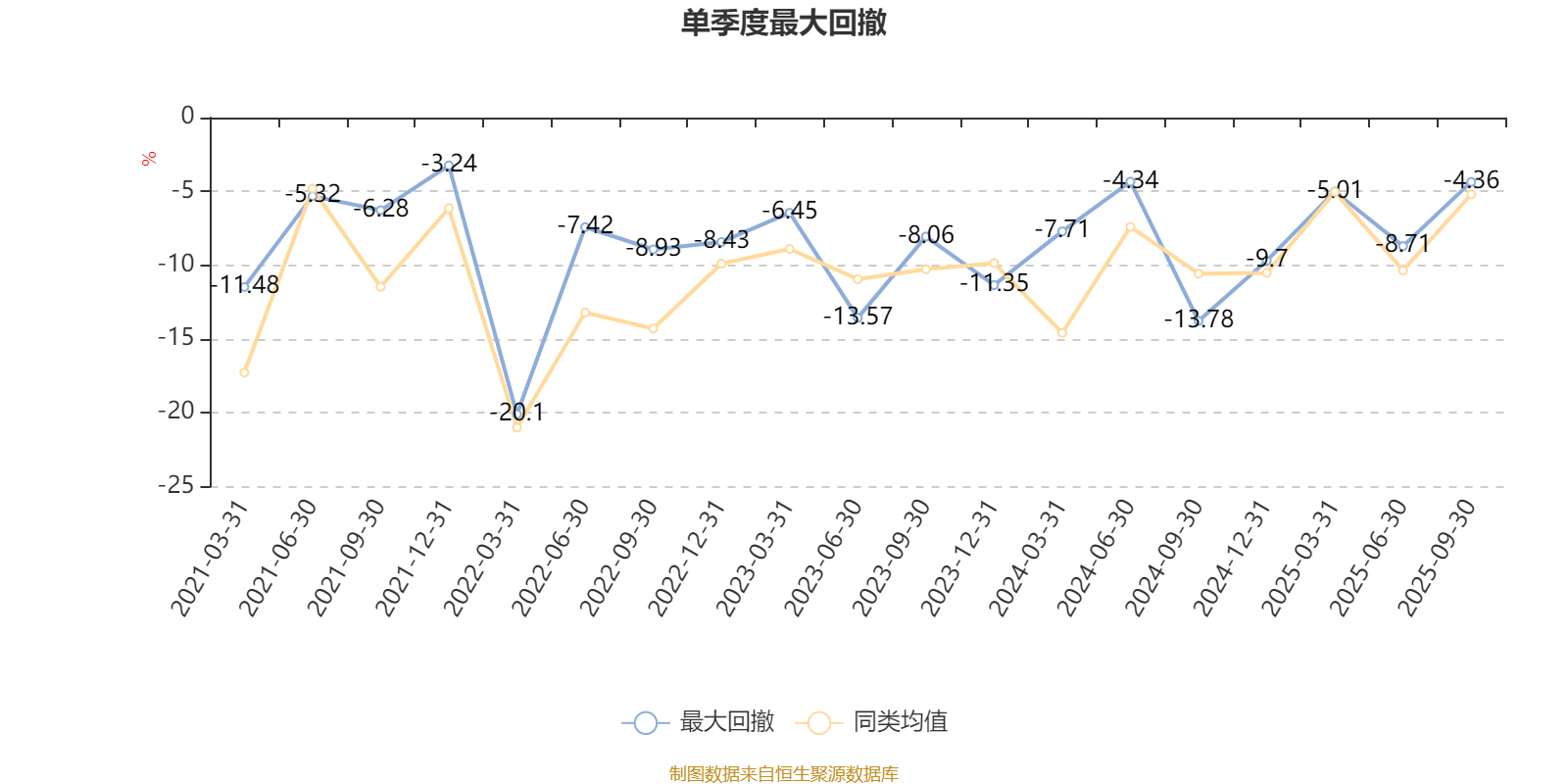 截至10月30日,基金近三年最大回撤为27.44%,同类可比基金排名27/124。单季度最大回撤出现在2022年一季度,为20.1%。