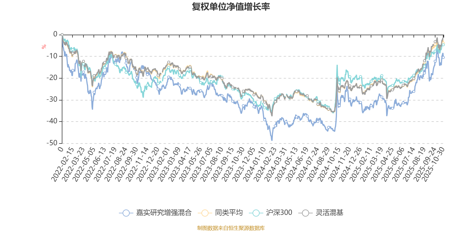 截至10月30日,嘉实研究增强混合近三个月复权单位净值增长率为10.79%,位于同类可比基金675/1287;近半年复权单位净值增长率为35.38%,位于同类可比基金373/1287;近一年复权单位净值增长率为26.27%,位于同类可比基金562/1287;近三年复权单位净值增长率为6.40%,位于同类可比基金890/1286。