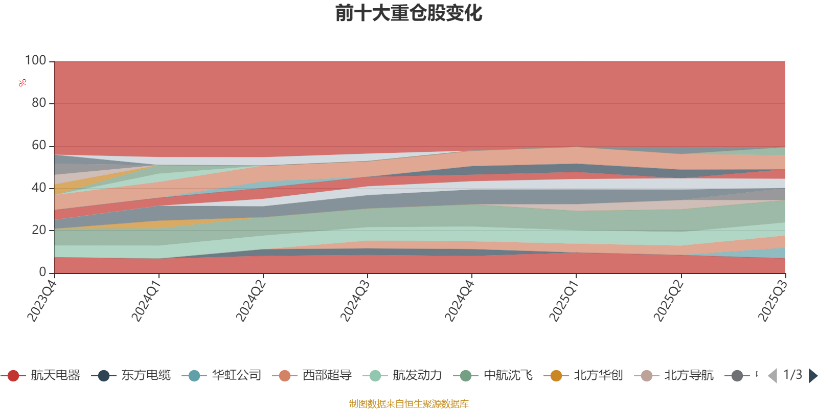 该基金持股集中度较高。截至2025年三季度末,基金十大重仓股分别是中航沈飞、航天电器、中航光电、航发动力、西部超导、中微公司、华虹公司、菲利华、图南股份、中芯国际。