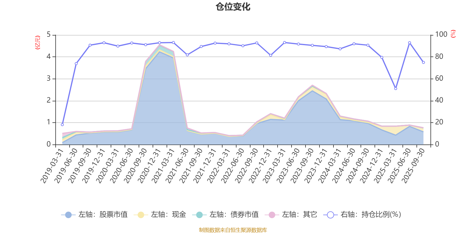 据定期报告数据统计,近三年平均股票仓位为84.56%,同类平均为72.35%。2023年一季度末基金达到93.11%的最高仓位,2019年一季度末最低,为18.19%。