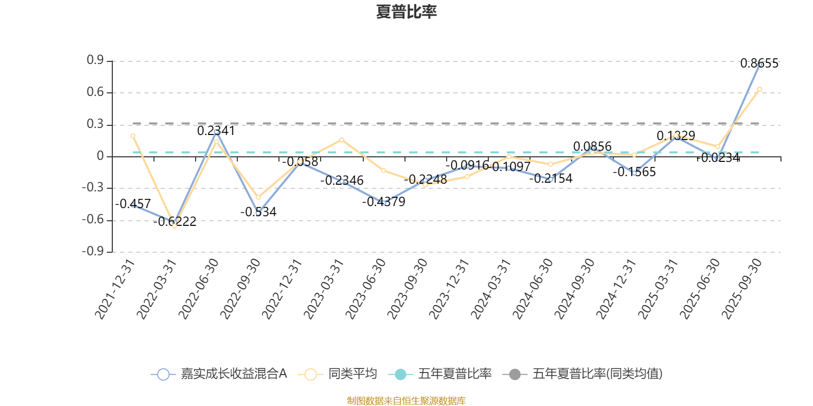 截至9月30日,基金近三年夏普比率为0.2335,位于同类可比基金1016/1285。