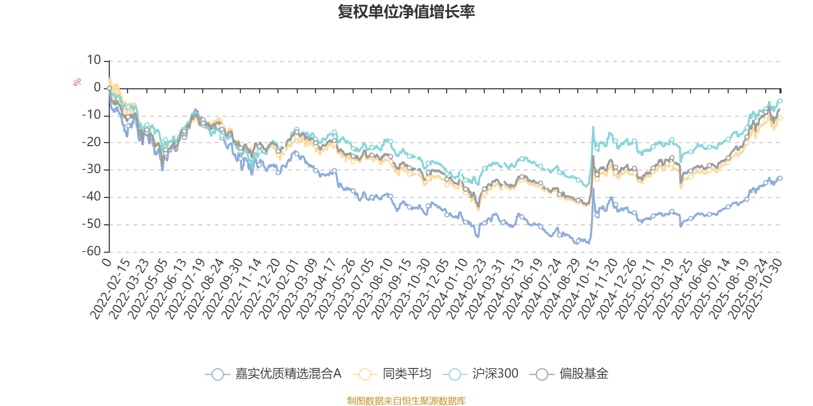 截至10月30日,嘉实优质精选混合A近三个月复权单位净值增长率为15.20%,位于同类可比基金132/265;近半年复权单位净值增长率为28.80%,位于同类可比基金129/265;近一年复权单位净值增长率为22.05%,位于同类可比基金183/265;近三年复权单位净值增长率为-2.12%,位于同类可比基金221/253。