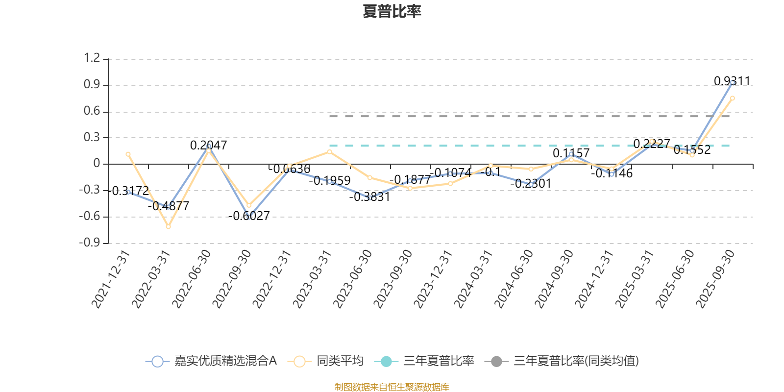 截至9月30日,基金近三年夏普比率为0.2116,位于同类可比基金219/252。