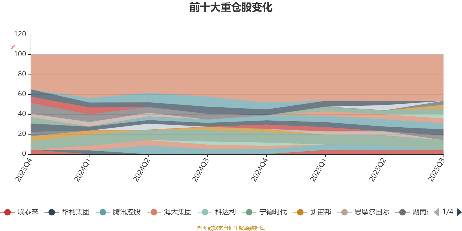 该基金持股集中度较高。截至2025年三季度末,基金十大重仓股分别是宁德时代、信达生物、药明康德、药明生物、湖南裕能、豪威集团、地平线机器人-W、中矿资源、璞泰来、阿里巴巴-W。