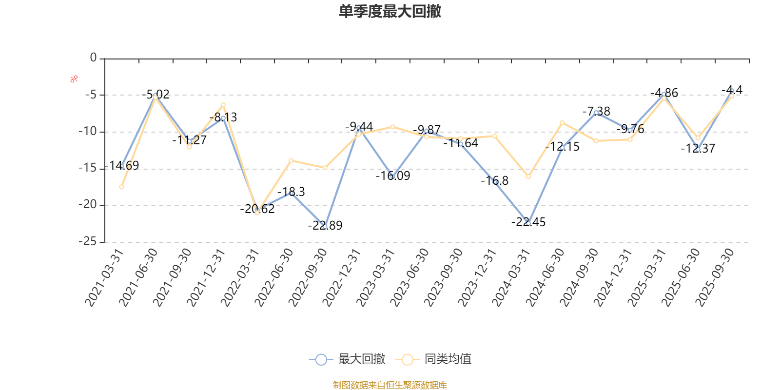 截至10月30日,基金近三年最大回撤为38.83%,同类可比基金排名105/176。单季度最大回撤出现在2022年三季度,为22.89%。