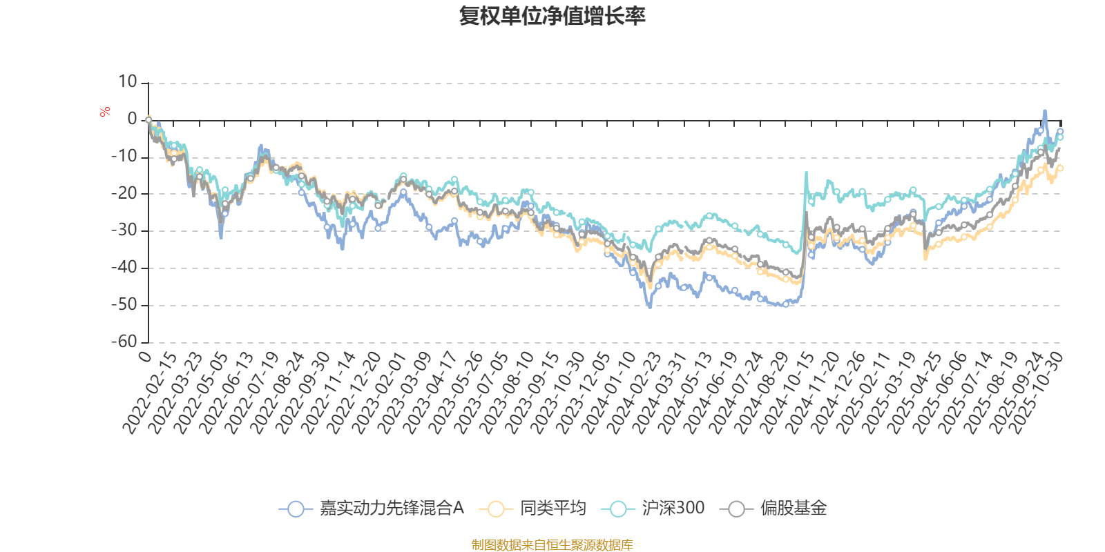 截至10月30日,嘉实动力先锋混合A近三个月复权单位净值增长率为15.27%,位于同类可比基金85/185;近半年复权单位净值增长率为33.94%,位于同类可比基金72/185;近一年复权单位净值增长率为47.67%,位于同类可比基金33/181;近三年复权单位净值增长率为48.40%,位于同类可比基金30/175。
