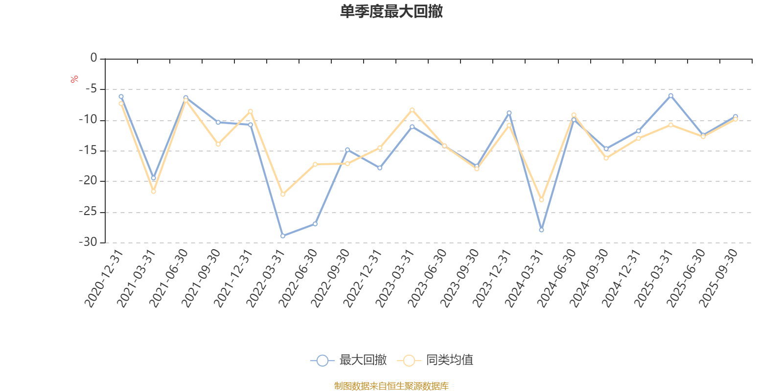 截至10月29日,基金近三年最大回撤为48.35%,同类可比基金排名121/159。单季度最大回撤出现在2022年一季度,为28.9%。