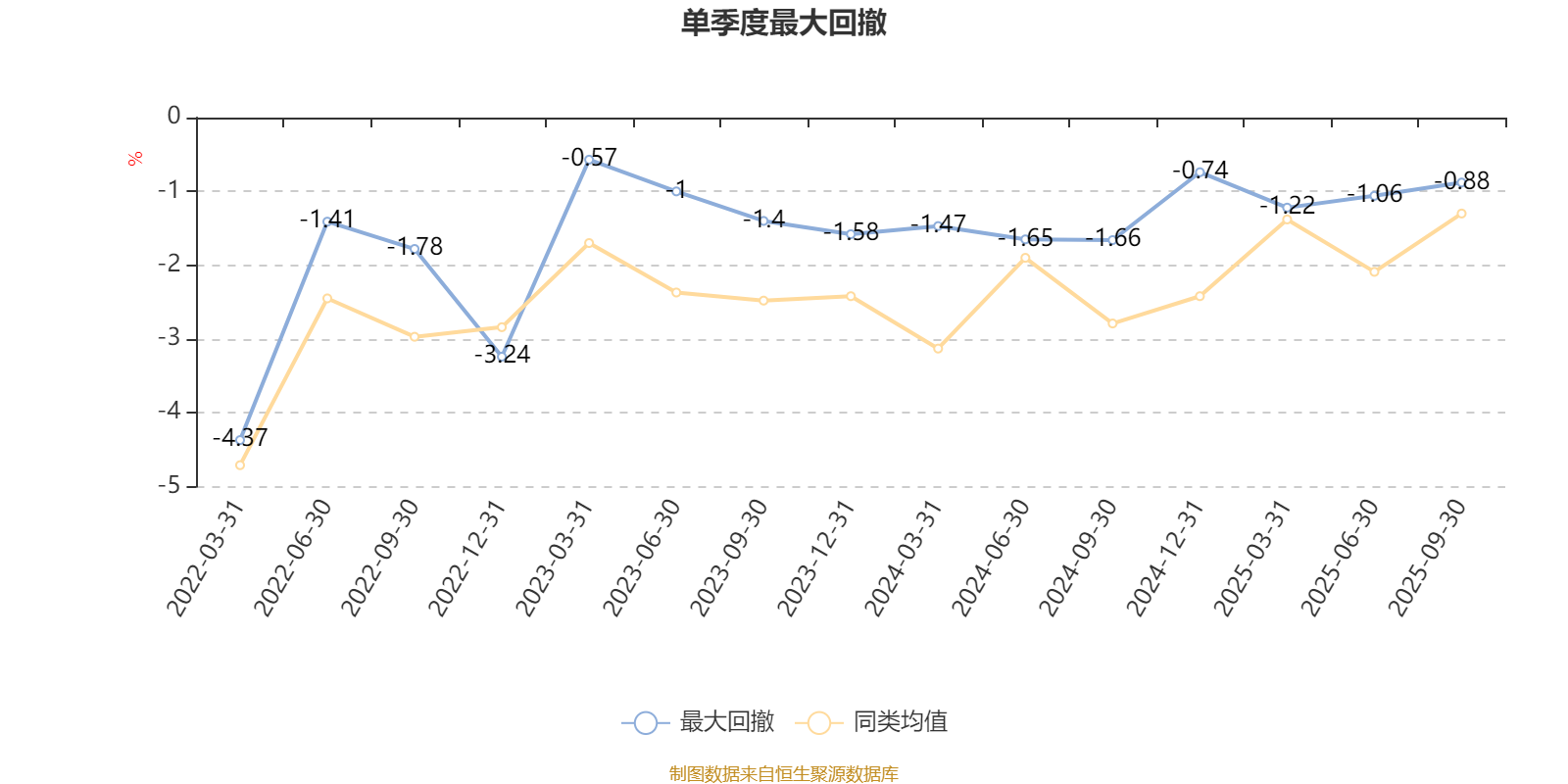 截至10月29日,基金近三年最大回撤为3.04%,同类可比基金排名58/534。单季度最大回撤出现在2022年一季度,为4.37%。