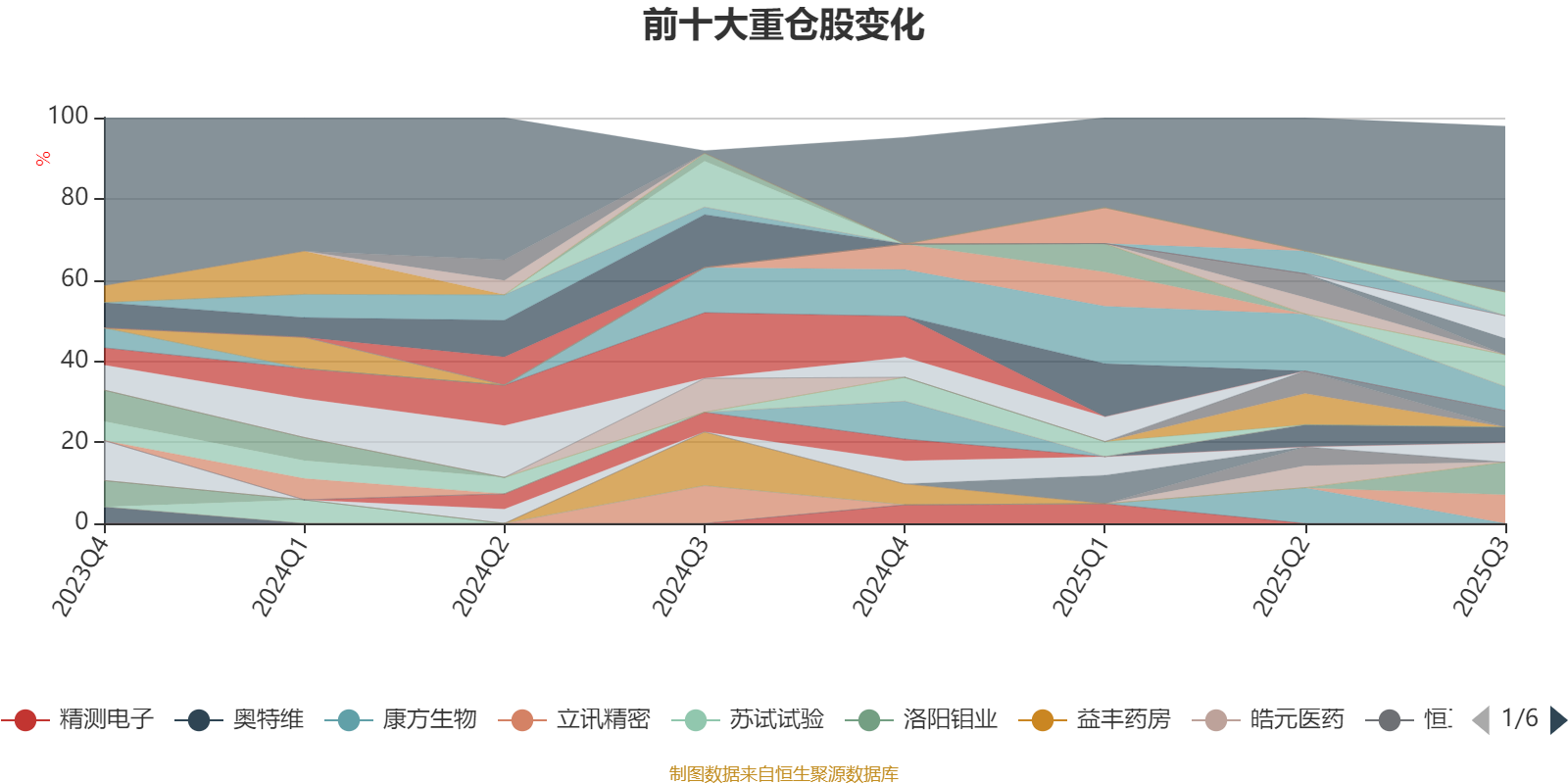该基金持股集中度较高。截至2025年三季度末,基金十大重仓股分别是洛阳钼业、康诺亚-B、立讯精密、固生堂、山东黄金、中天科技、紫金矿业、浪潮信息、滨江集团、蓝特光学。