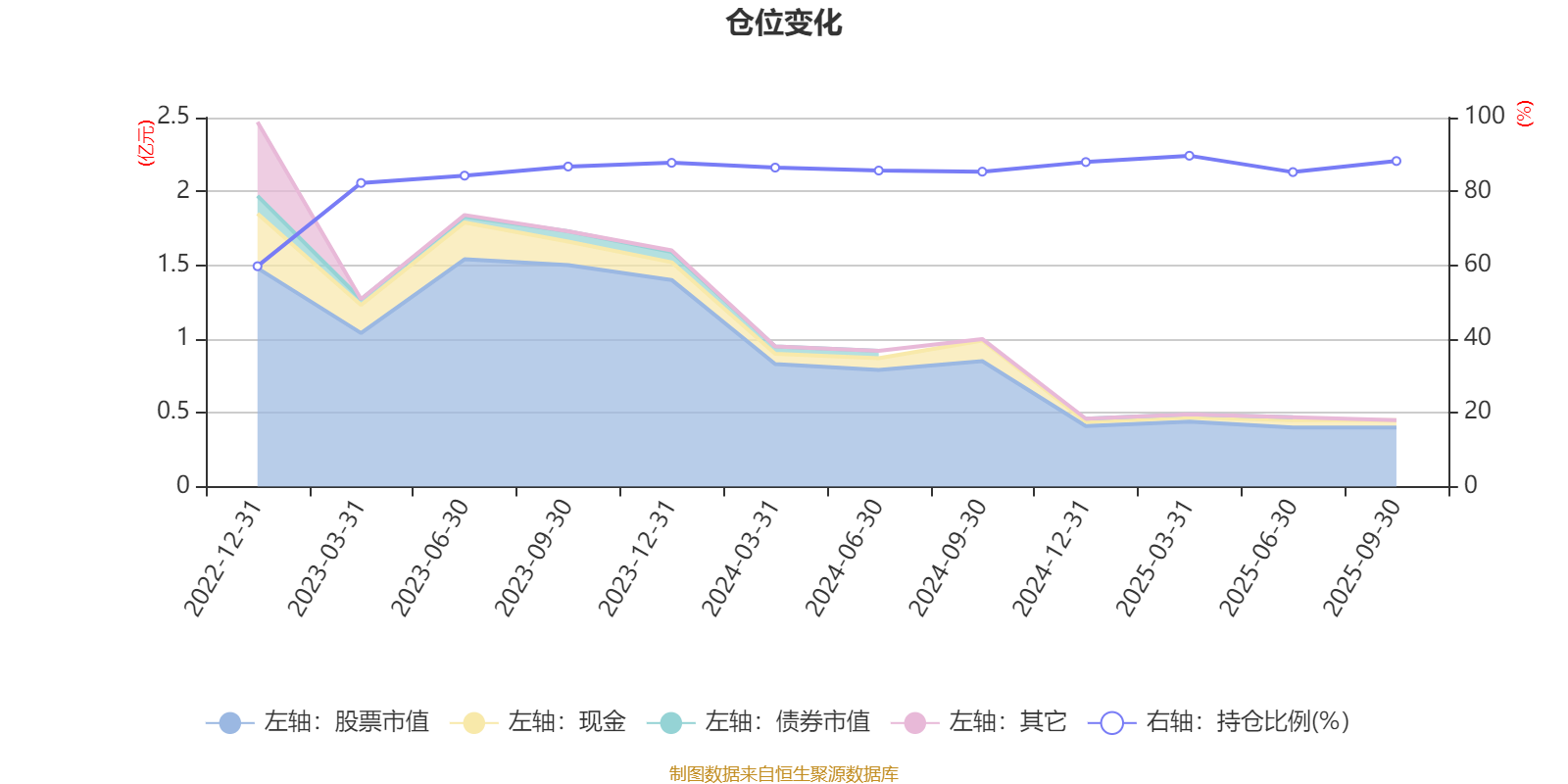 据定期报告数据统计,近三年平均股票仓位为84.11%,同类平均为83.73%。2025年一季度末基金达到89.67%的最高仓位,2022年末最低,为59.72%。
