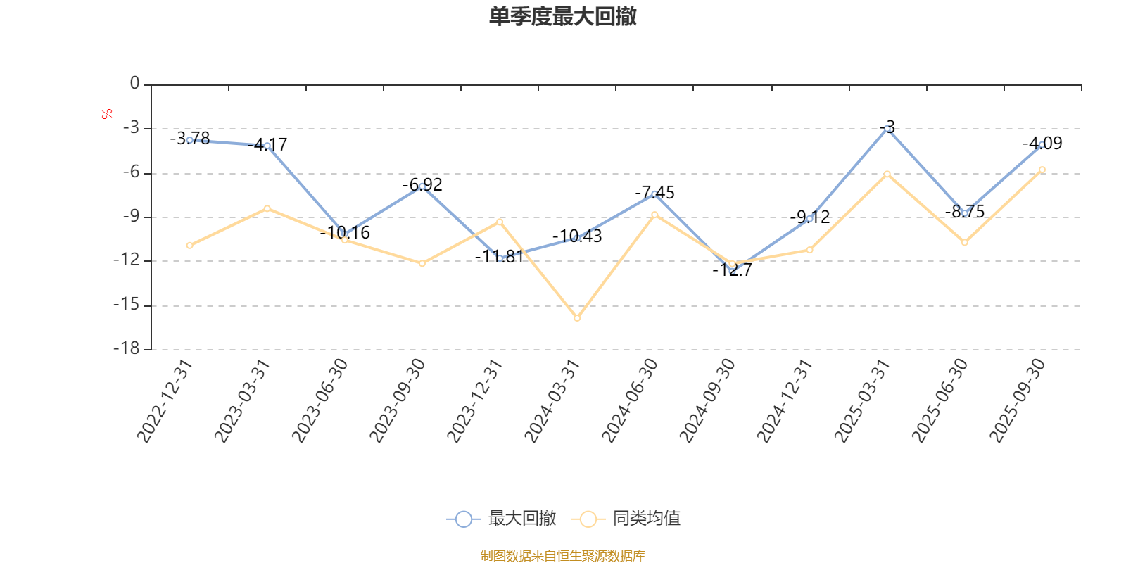 截至10月29日,基金近三年最大回撤为24.05%,同类可比基金排名40/363。单季度最大回撤出现在2024年三季度,为12.7%。