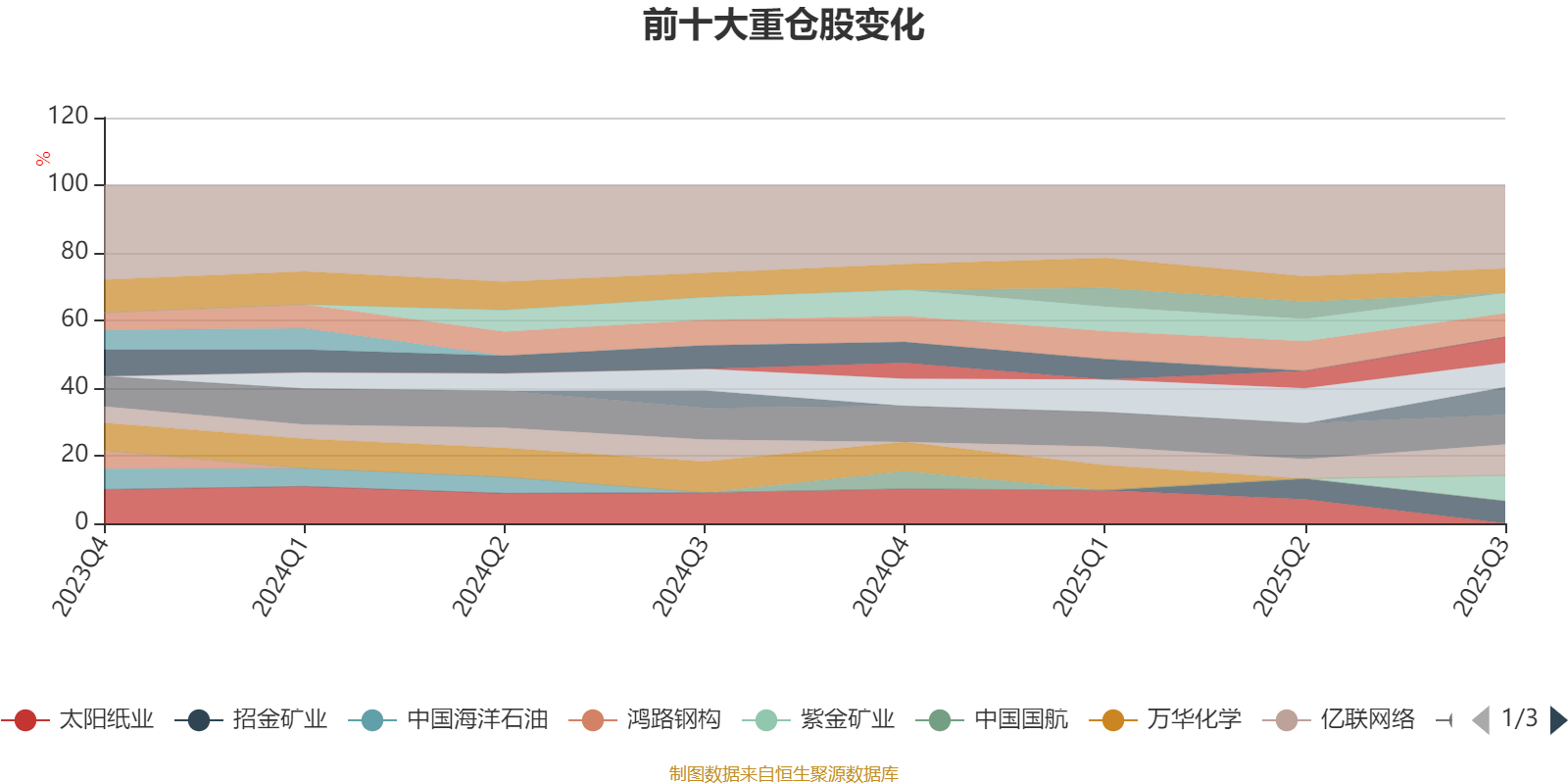 该基金持股集中度较高,近2年前十大重仓股集中度长期超过60%。截至2025年三季度末,基金十大重仓股分别是亿联网络、成都银行、龙湖集团、南钢股份、紫金矿业、海信视像、招商银行、纽威股份、招金矿业、柳工。