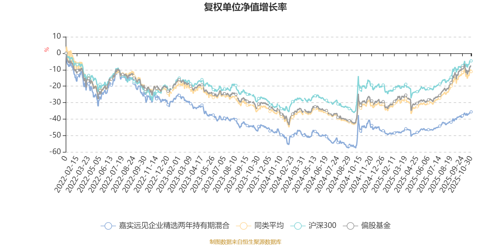 截至10月30日,嘉实远见企业精选两年持有期混合近三个月复权单位净值增长率为11.65%,位于同类可比基金167/265;近半年复权单位净值增长率为24.33%,位于同类可比基金170/265;近一年复权单位净值增长率为17.81%,位于同类可比基金205/265;近三年复权单位净值增长率为-8.22%,位于同类可比基金234/253。