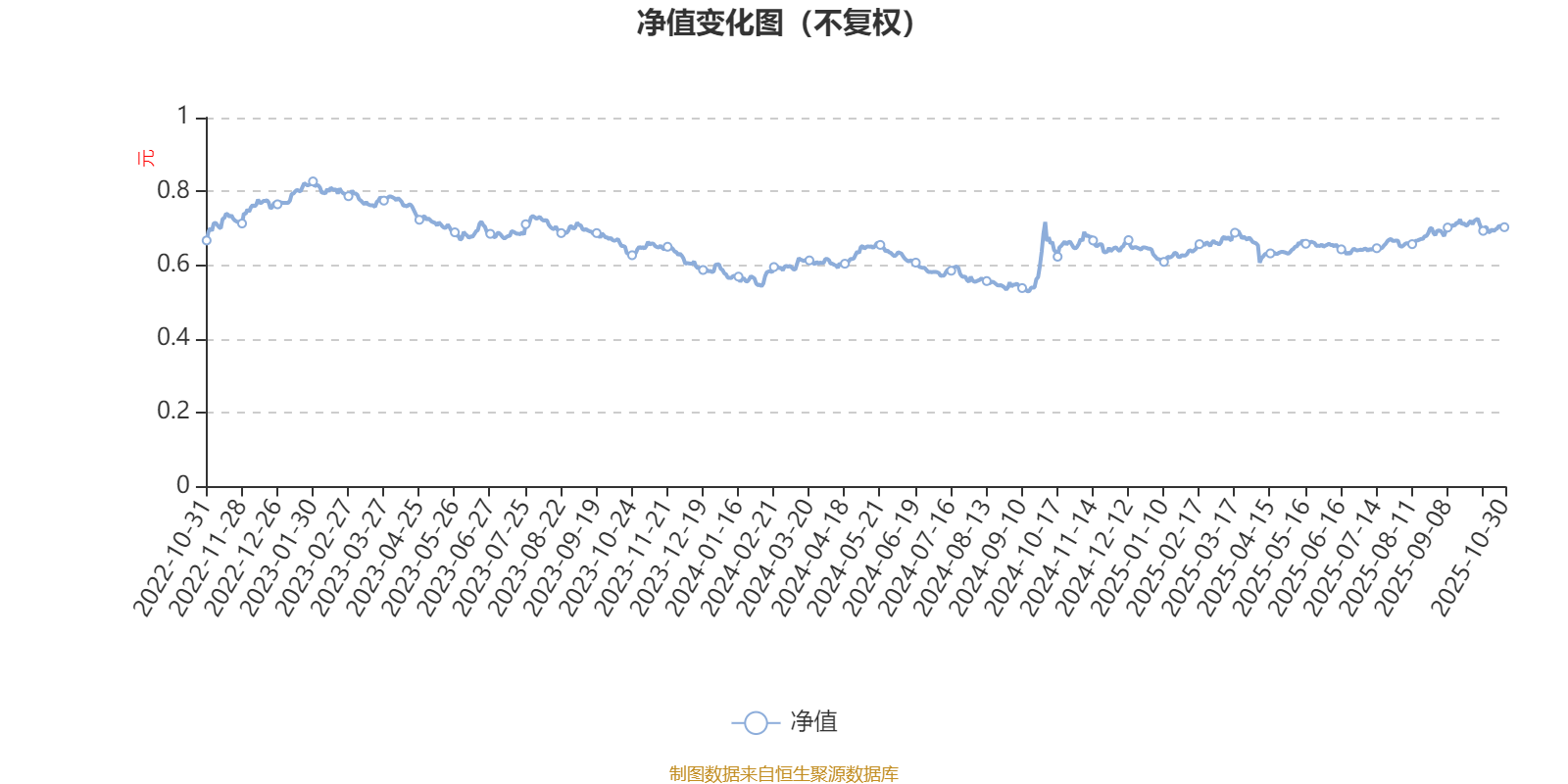 通过所选区间该基金净值增长率分位图,可以观察该基金与同类基金业绩比较情况。图为坐标原点到区间内某时点的净值增长率在同类基金中的分位数。