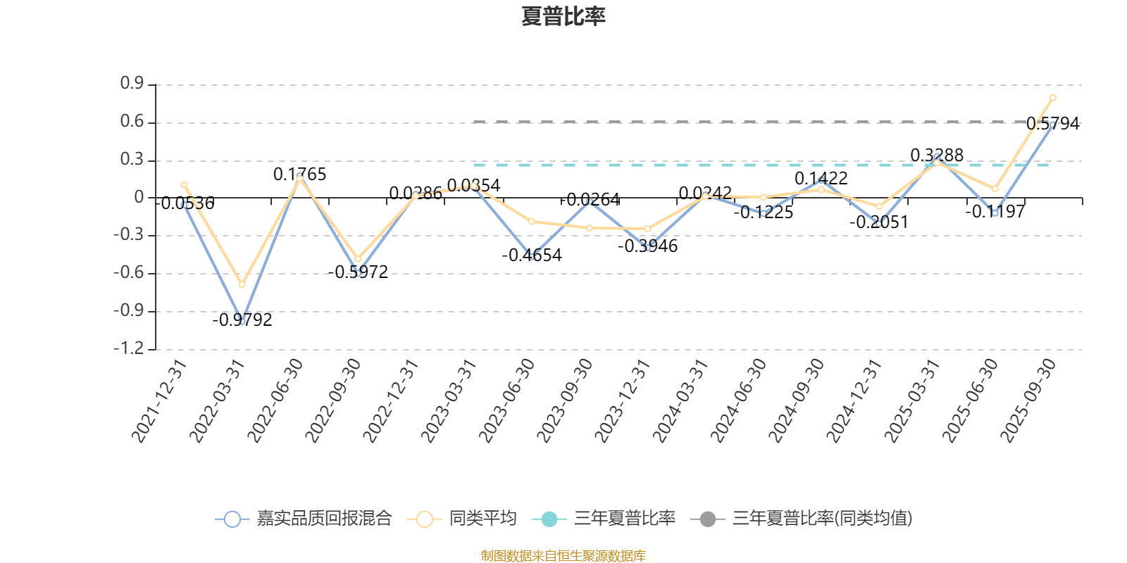 截至9月30日,基金近三年夏普比率为0.2608,位于同类可比基金110/125。