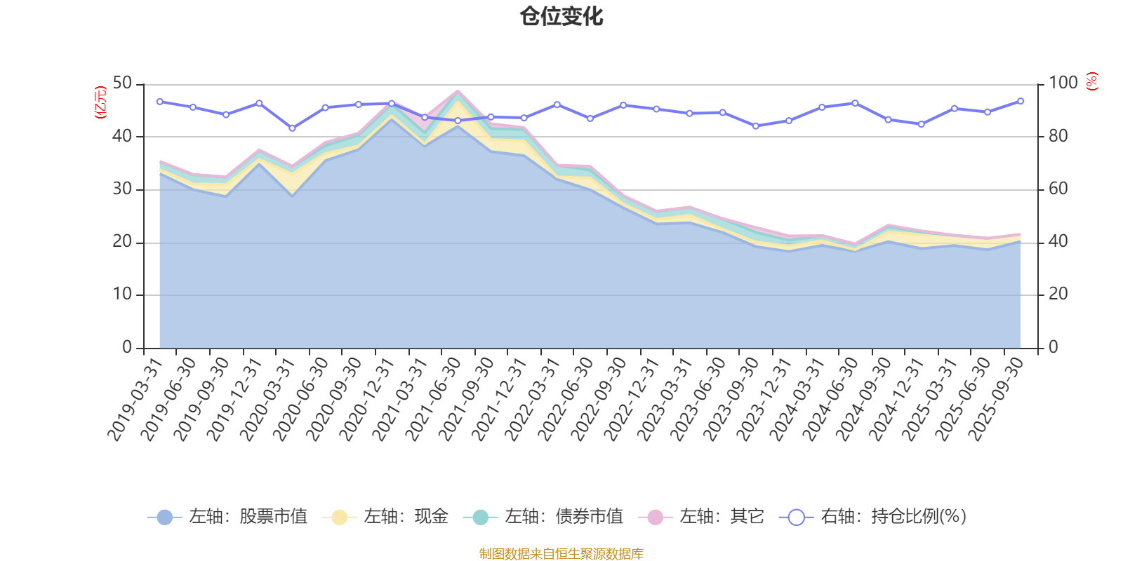 据定期报告数据统计,近三年平均股票仓位为89.03%,同类平均为72.35%。2025年三季度末基金达到93.6%的最高仓位,2020年一季度末最低,为83.31%。