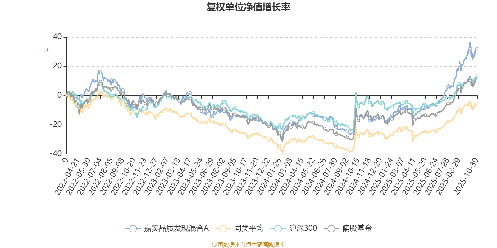 截至10月30日,嘉实品质发现混合A近三个月复权单位净值增长率为22.92%,位于同类可比基金150/689;近半年复权单位净值增长率为46.40%,位于同类可比基金103/688;近一年复权单位净值增长率为56.48%,位于同类可比基金58/658;近三年复权单位净值增长率为44.19%,位于同类可比基金52/364。