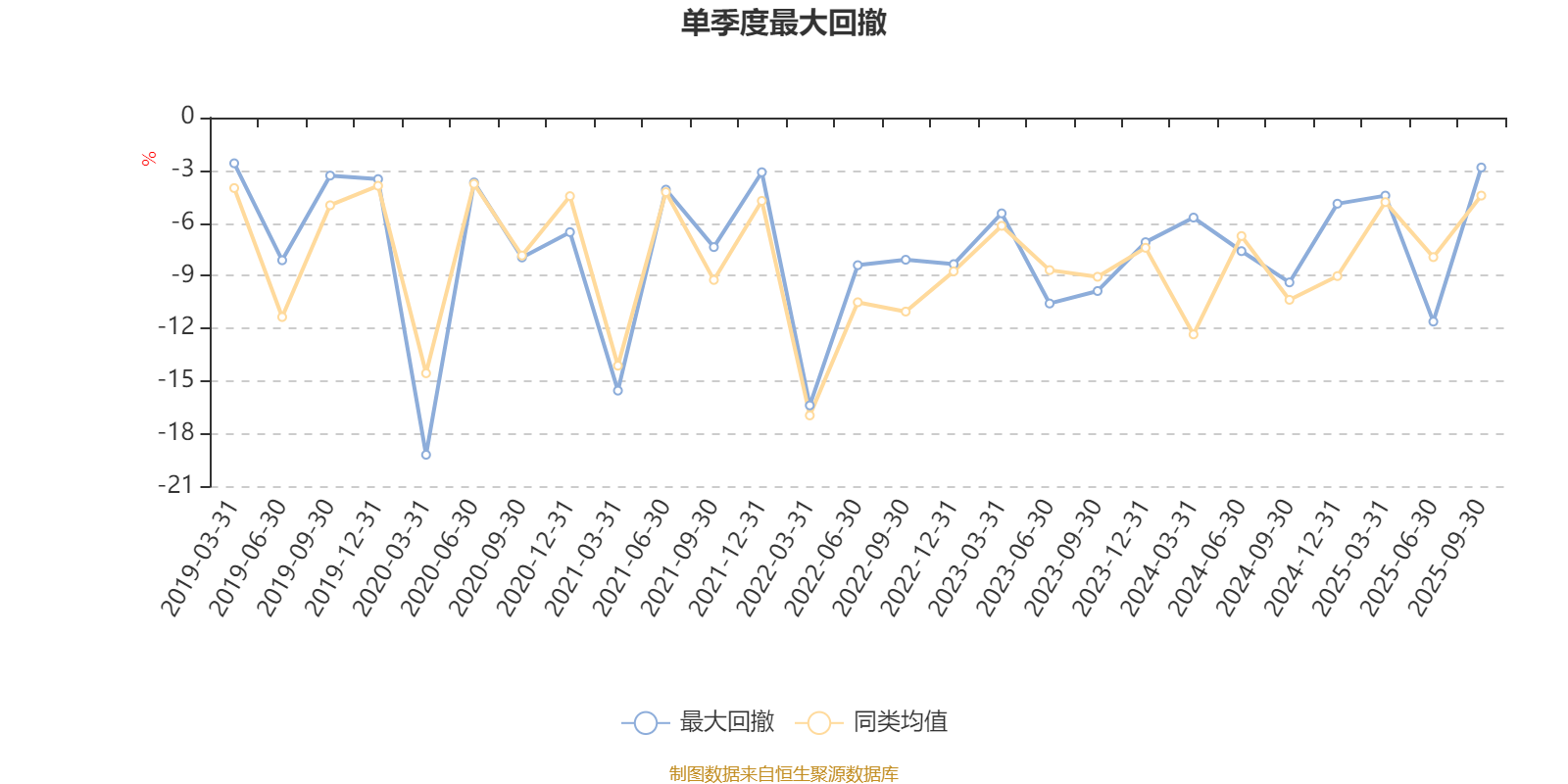 截至10月29日,基金近三年最大回撤为24.55%,同类可比基金排名49/117。单季度最大回撤出现在2020年一季度,为19.19%。