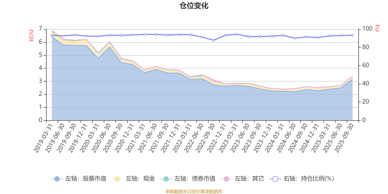 据定期报告数据统计,近三年平均股票仓位为92.31%,同类平均为85.66%。2023年一季度末基金达到94.38%的最高仓位,2022年三季度末最低,为87.75%。