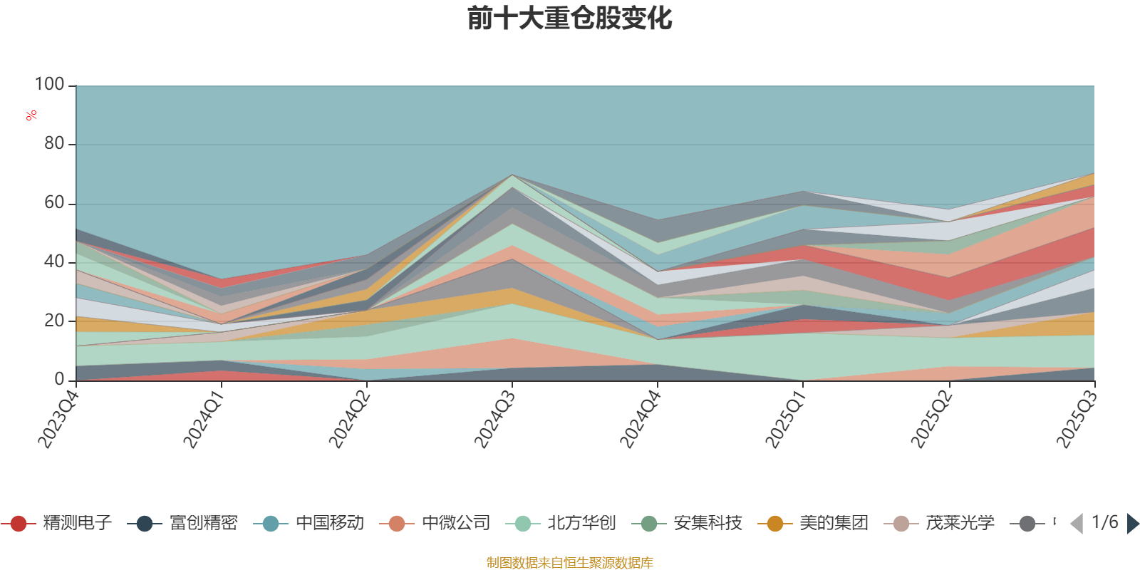 截至2025年三季度末,基金十大重仓股分别是北方华创、中芯国际、海光信息、格力电器、美的集团、东方财富、京仪装备、富创精密、中国电信、长城证券。