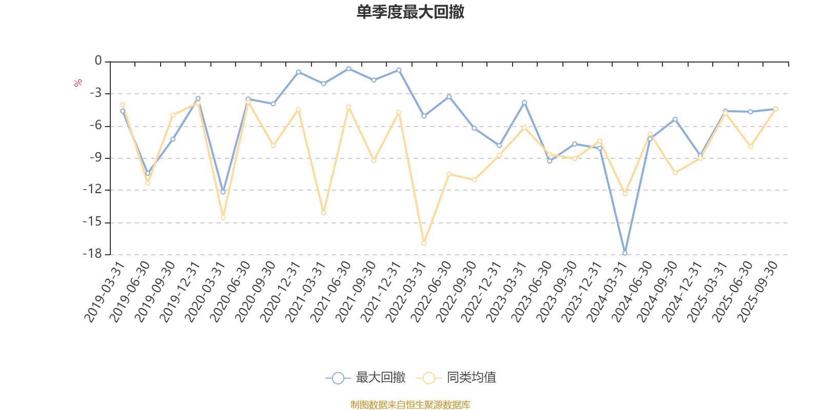 截至10月30日,基金近三年最大回撤为29.91%,同类可比基金排名74/117。单季度最大回撤出现在2024年一季度,为17.87%。