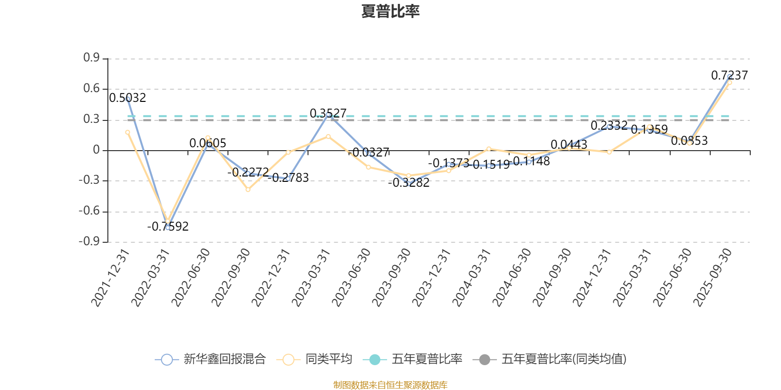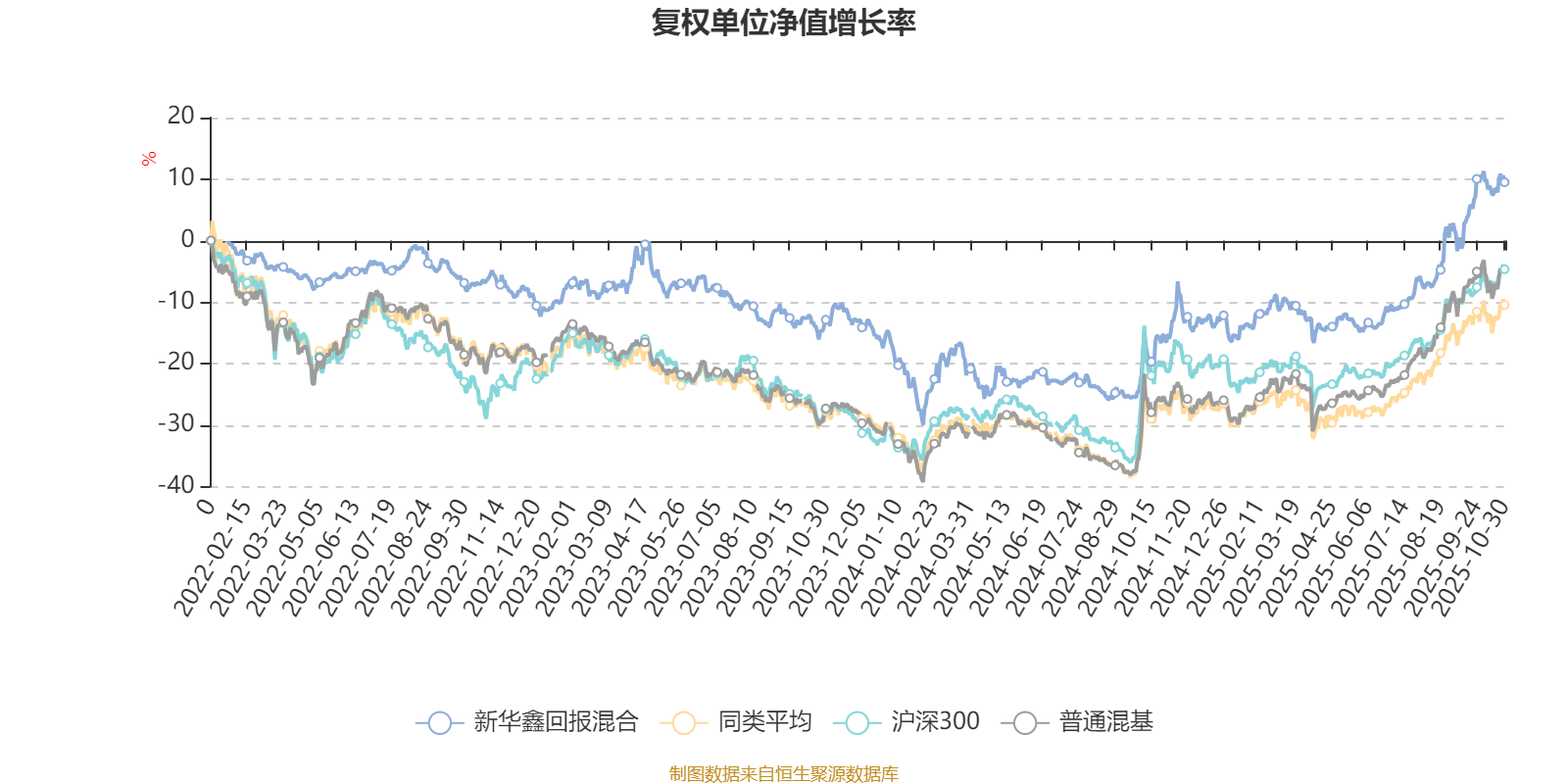 截至10月30日,新华鑫回报混合近三个月复权单位净值增长率为17.25%,位于同类可比基金31/134;近半年复权单位净值增长率为26.91%,位于同类可比基金51/134;近一年复权单位净值增长率为31.06%,位于同类可比基金32/130;近三年复权单位净值增长率为17.57%,位于同类可比基金66/119。