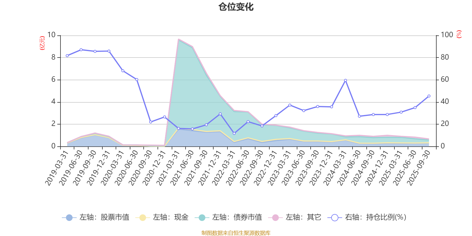 据定期报告数据统计,近三年平均股票仓位为35.38%,同类平均为67.37%。2019年上半年末基金达到87.09%的最高仓位,2022年一季度末最低,为11.78%。