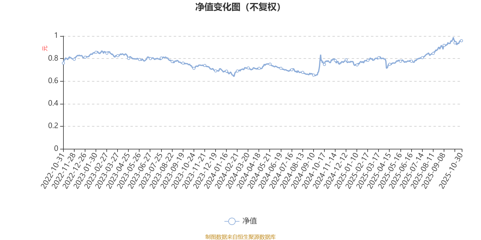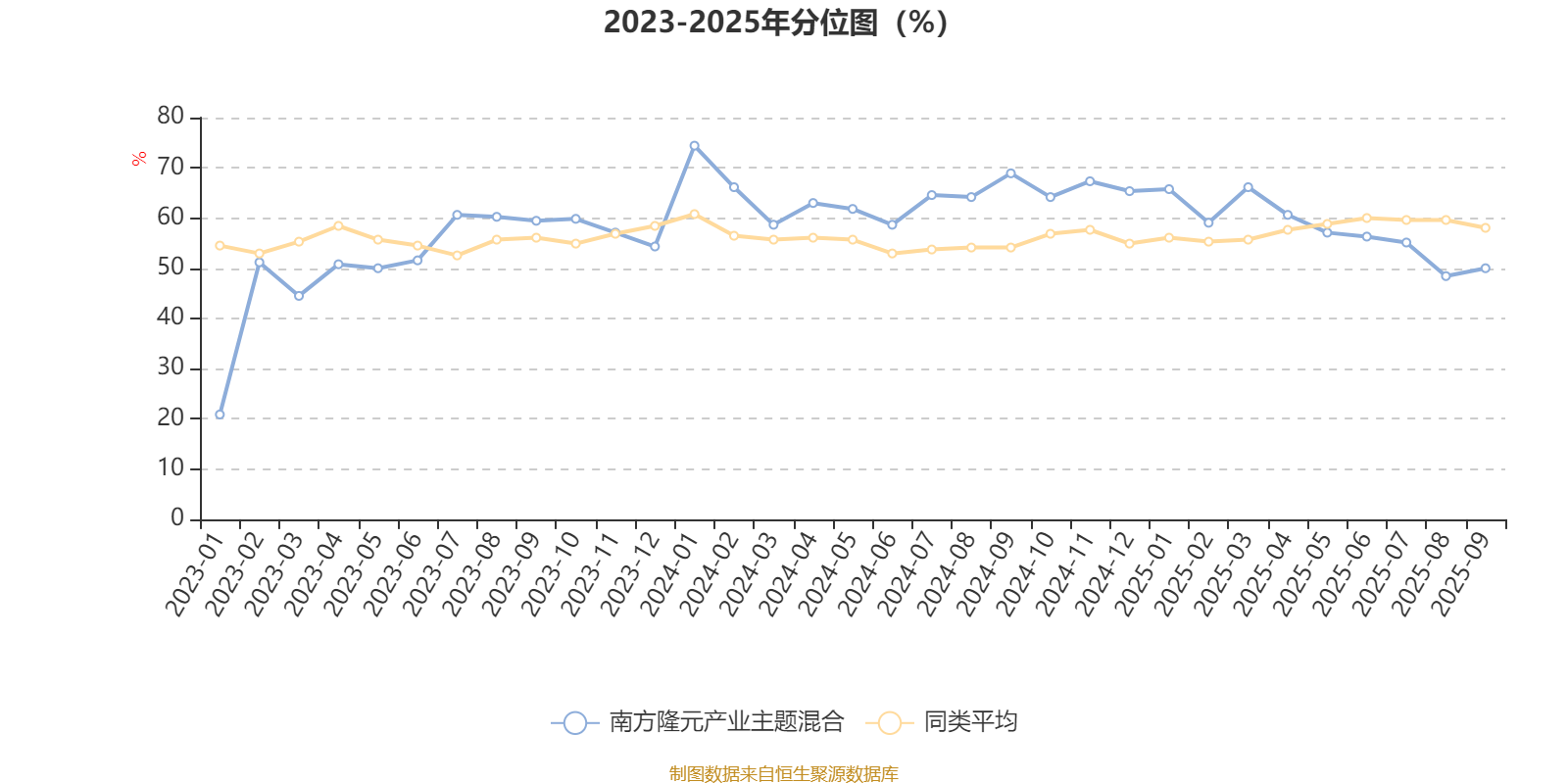 通过所选区间该基金净值增长率分位图,可以观察该基金与同类基金业绩比较情况。图为坐标原点到区间内某时点的净值增长率在同类基金中的分位数。