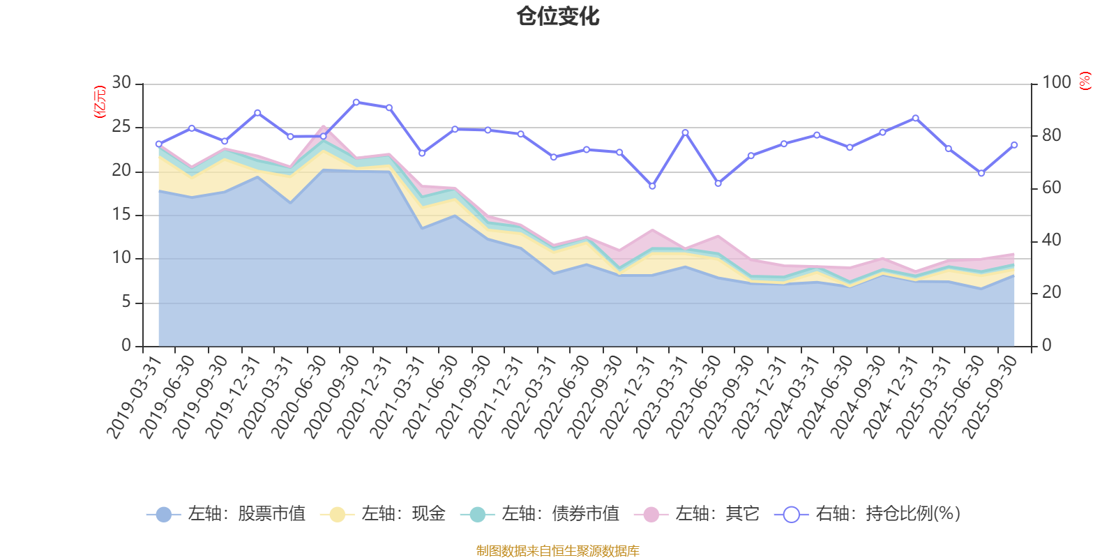 据定期报告数据统计,近三年平均股票仓位为74.73%,同类平均为85.99%。2020年三季度末基金达到92.95%的最高仓位,2022年末最低,为61.02%。