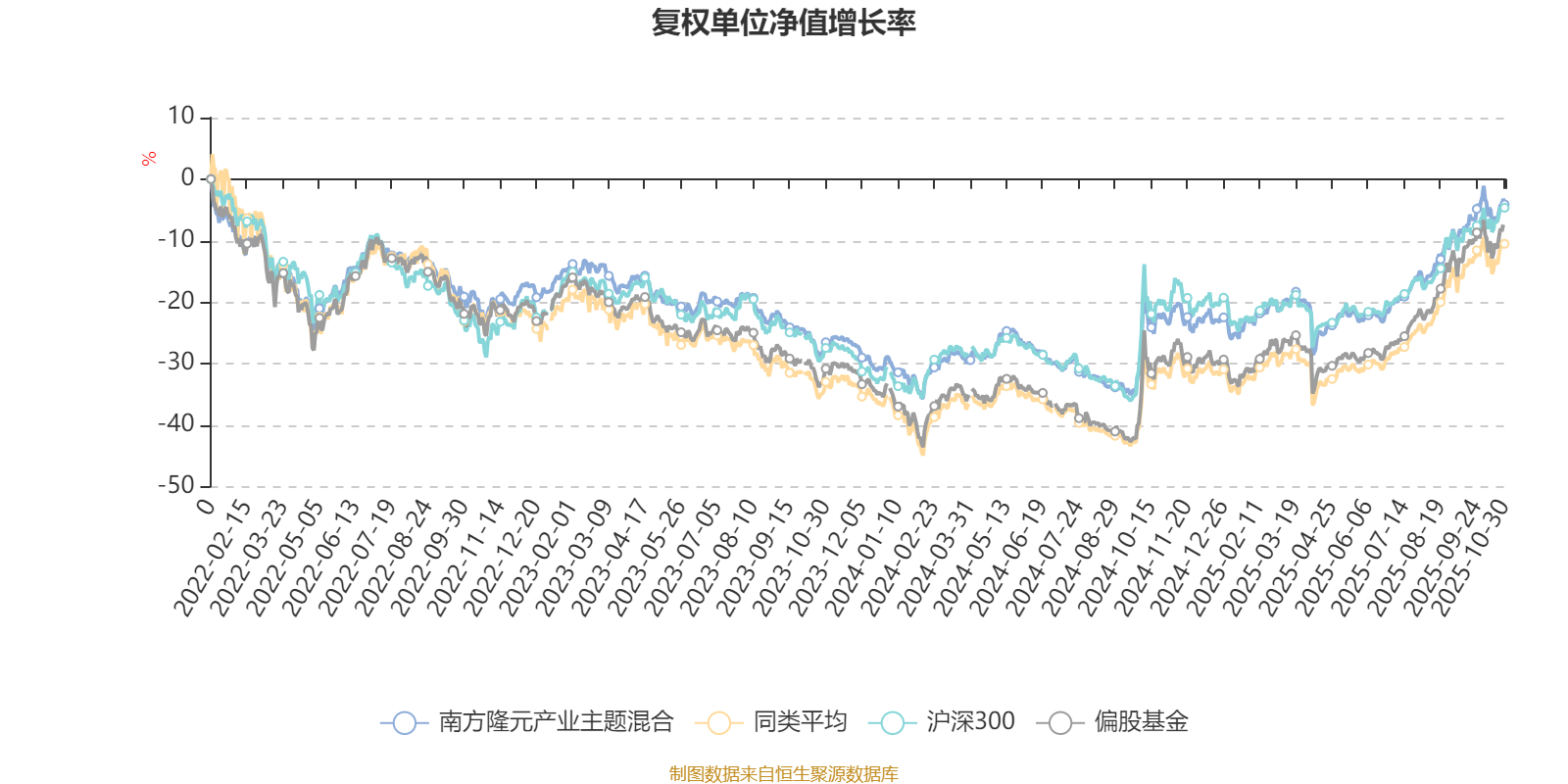 截至10月30日,南方隆元产业主题混合近三个月复权单位净值增长率为13.17%,位于同类可比基金147/265;近半年复权单位净值增长率为25.12%,位于同类可比基金164/265;近一年复权单位净值增长率为24.61%,位于同类可比基金167/265;近三年复权单位净值增长率为25.54%,位于同类可比基金107/253。