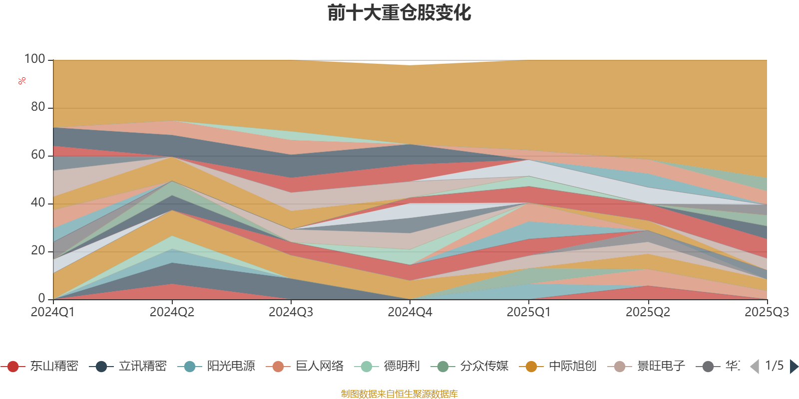 该基金持股集中度较高。截至2025年三季度末,基金十大重仓股分别是中芯国际、蓝思科技、兆易创新、歌尔股份、寒武纪、中际旭创、阿里巴巴-W、华虹半导体、开普云、巨人网络。