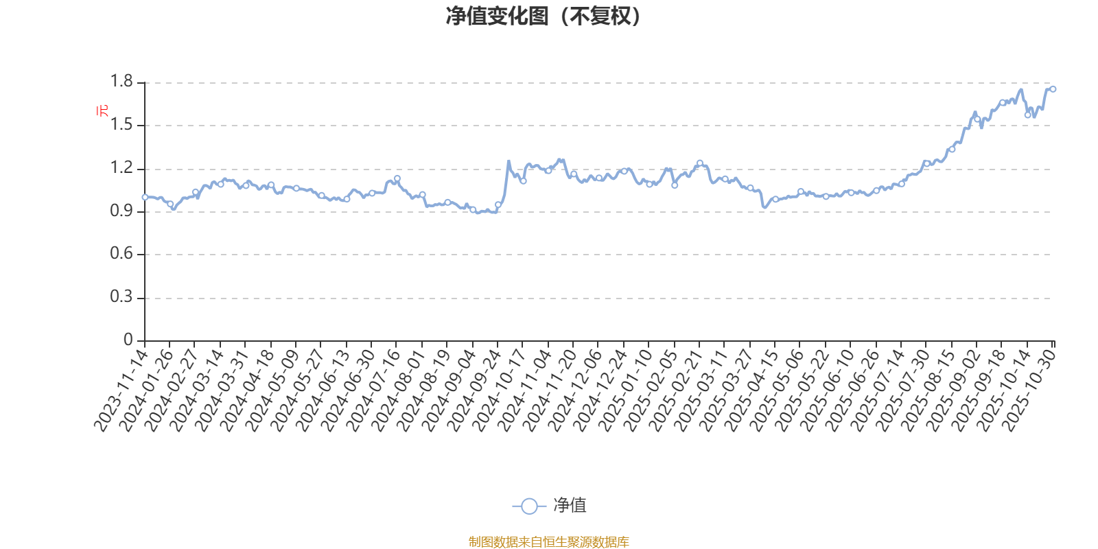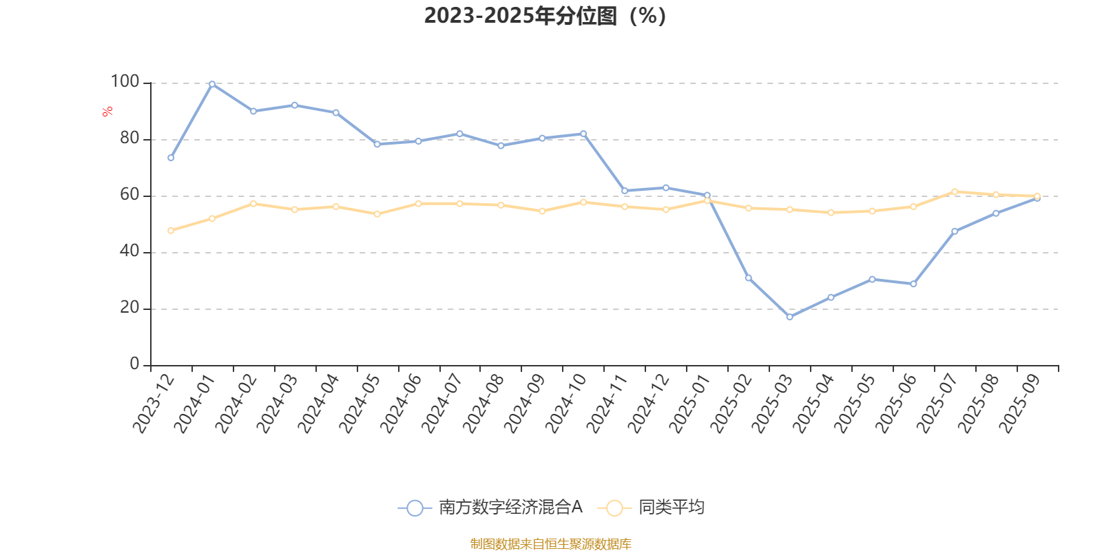 通过所选区间该基金净值增长率分位图,可以观察该基金与同类基金业绩比较情况。图为坐标原点到区间内某时点的净值增长率在同类基金中的分位数。