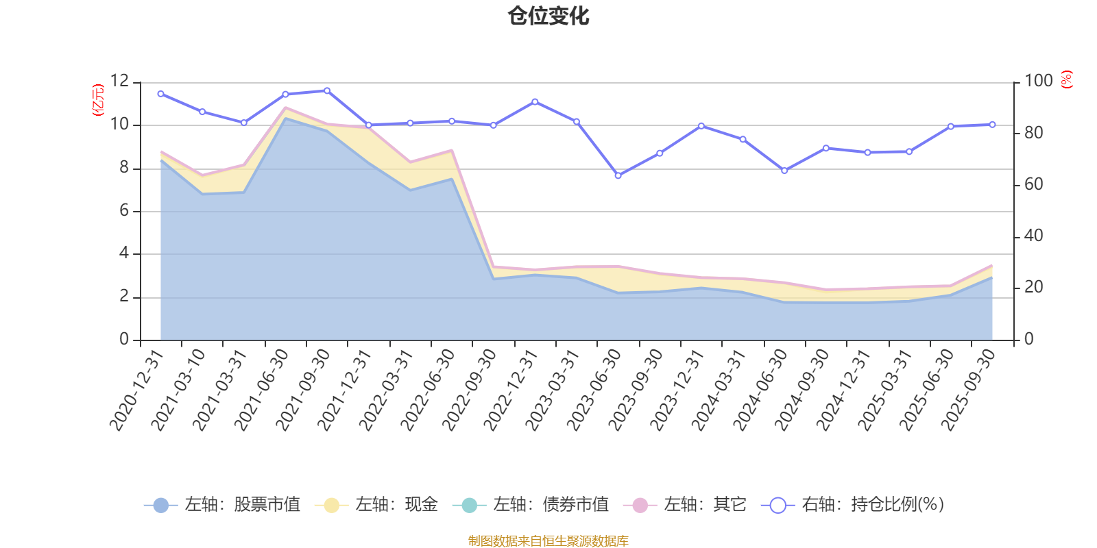 据定期报告数据统计,近三年平均股票仓位为77.23%,同类平均为85.66%。2021年三季度末基金达到96.72%的最高仓位,2023年上半年末最低,为63.8%。