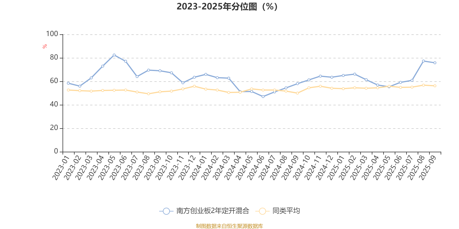 截至10月30日,南方创业板2年定开混合近三个月复权单位净值增长率为30.04%,位于同类可比基金65/621;近半年复权单位净值增长率为50.45%,位于同类可比基金80/621;近一年复权单位净值增长率为50.24%,位于同类可比基金117/611;近三年复权单位净值增长率为34.60%,位于同类可比基金143/518。