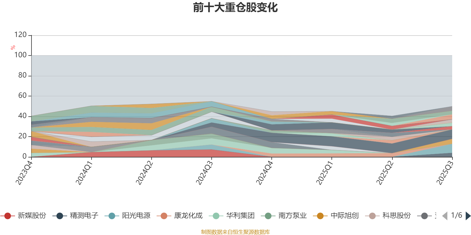 截至2025年三季度末,基金十大重仓股分别是宁德时代、阳光电源、中际旭创、新易盛、三环集团、精测电子、温氏股份、中芯国际、神州泰岳、英科医疗。
