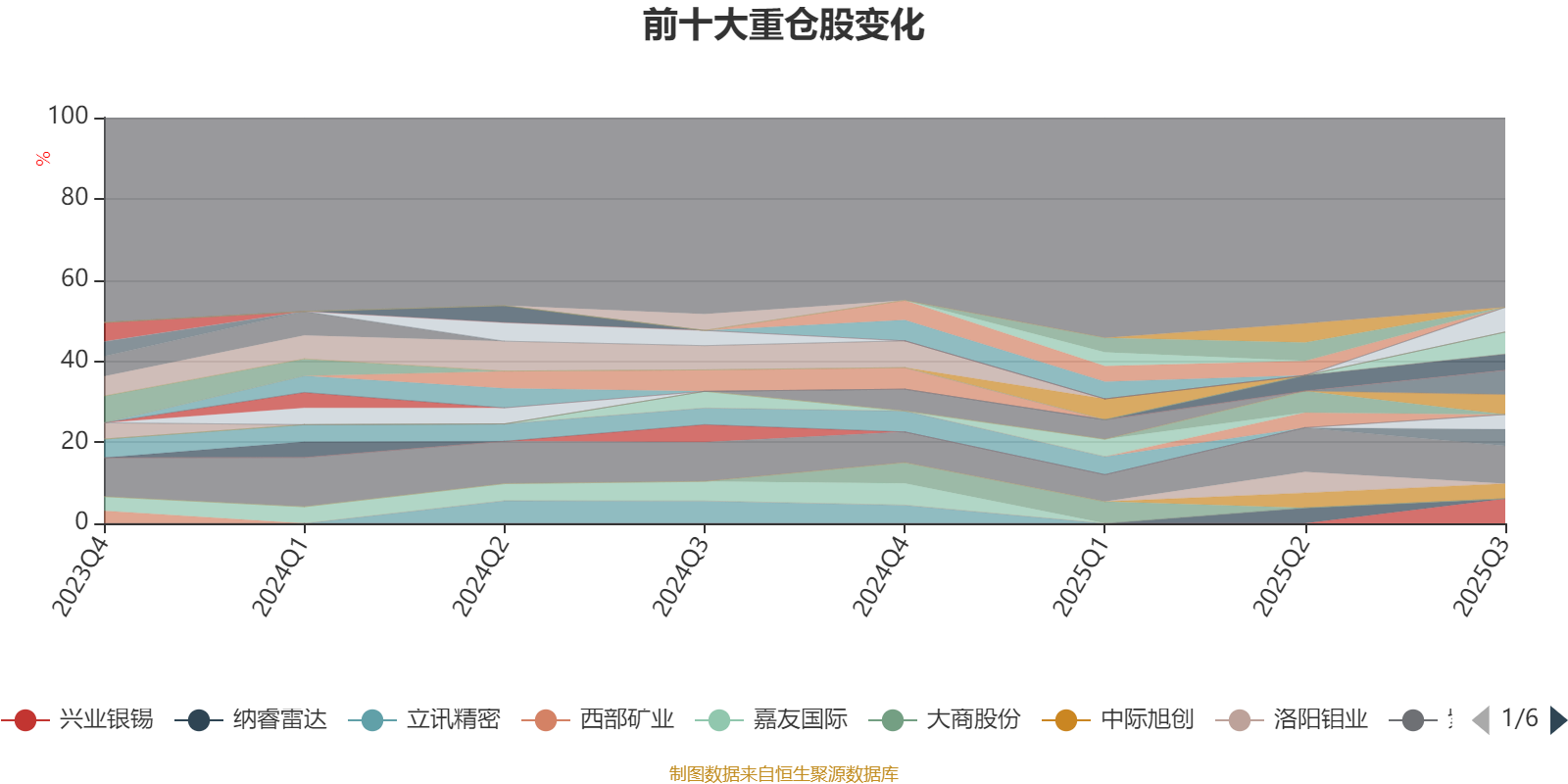截至2025年三季度末,基金十大重仓股分别是紫金矿业、工业富联、兴业银锡、铜陵有色、圆通速递、万华化学、耐普矿机、恺英网络、中际旭创、国恩股份。