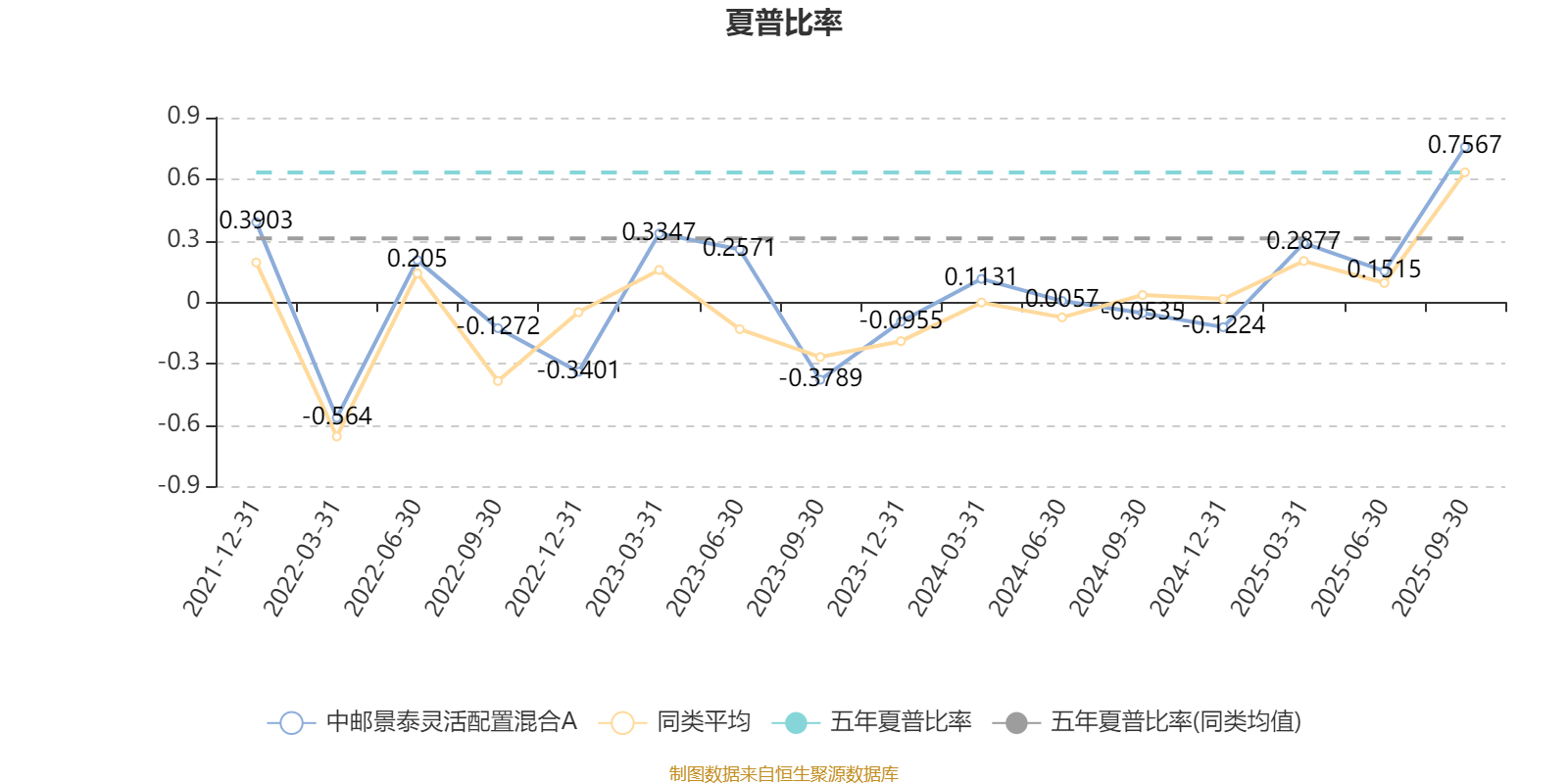 截至9月30日,基金近三年夏普比率为0.7731,位于同类可比基金289/1285。