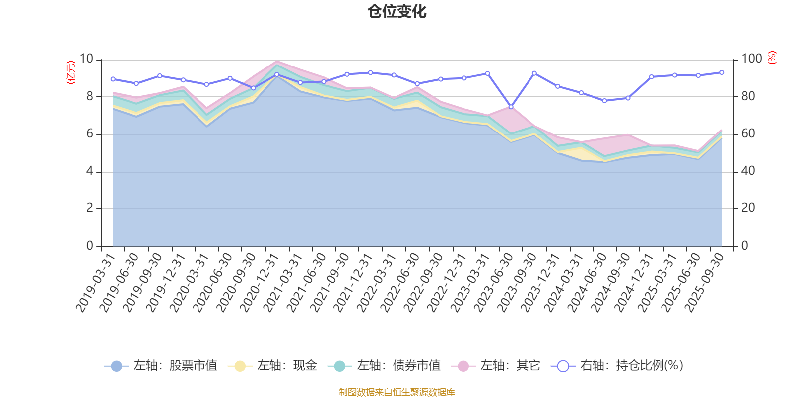 据定期报告数据统计,近三年平均股票仓位为86.84%,同类平均为85.99%。2025年三季度末基金达到93.08%的最高仓位,2023年上半年末最低,为74.7%。