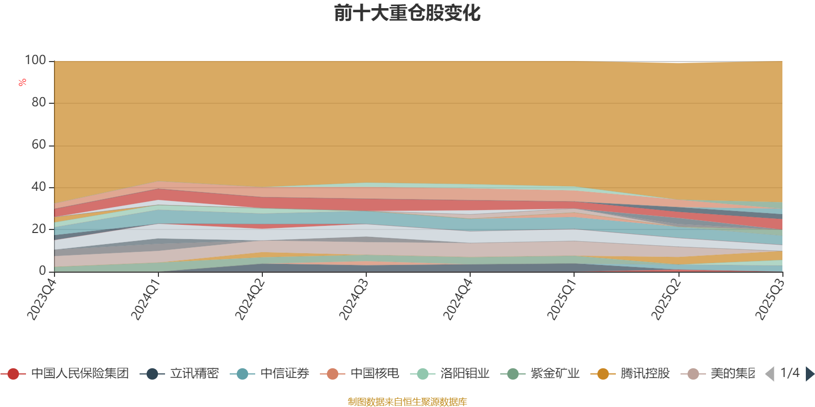 截至2025年三季度末,基金十大重仓股分别是海尔智家、宁德时代、腾讯控股、兆易创新、贵州茅台、中信证券、渝农商行、洛阳钼业、快手-W、阿里巴巴-W。