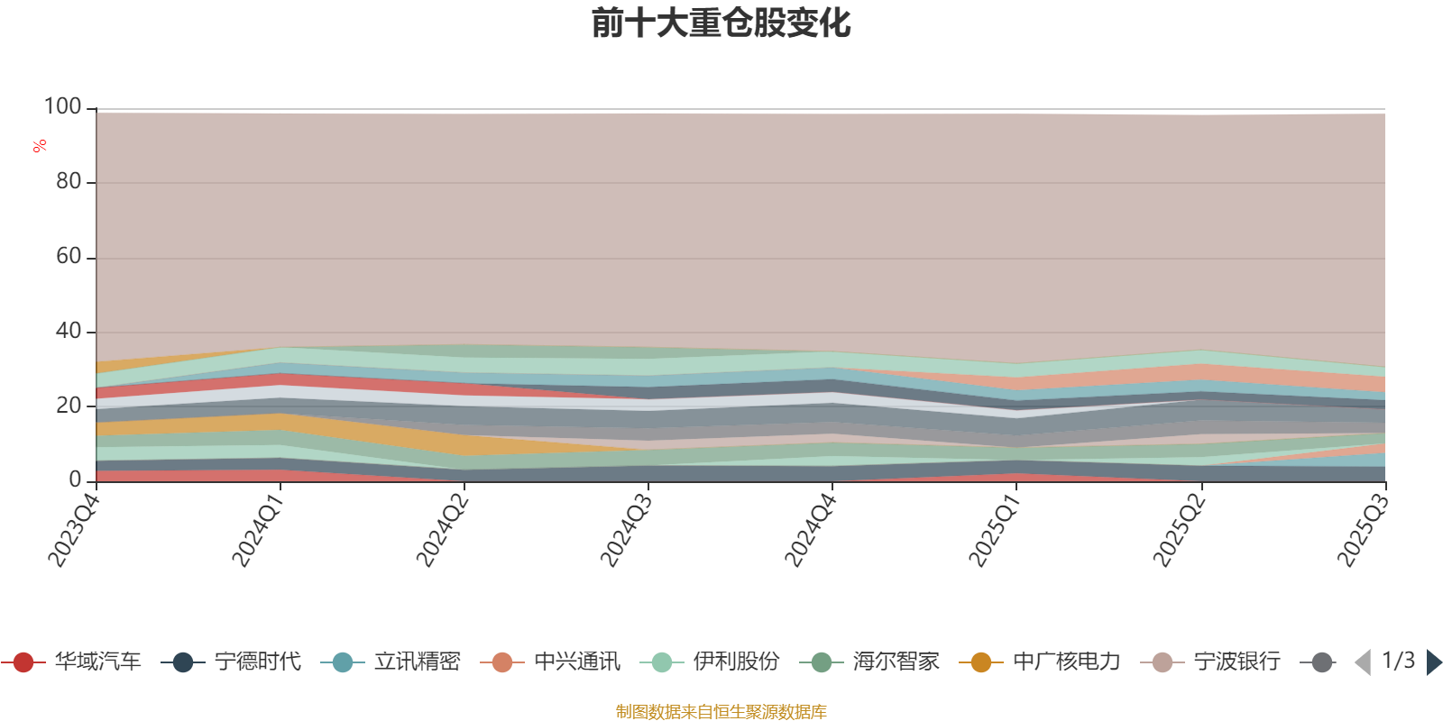 截至2025年三季度末,基金十大重仓股分别是腾讯控股、宁德时代、立讯精密、中国移动、分众传媒、海尔智家、美的集团、中兴通讯、正泰电器、瀚蓝环境。