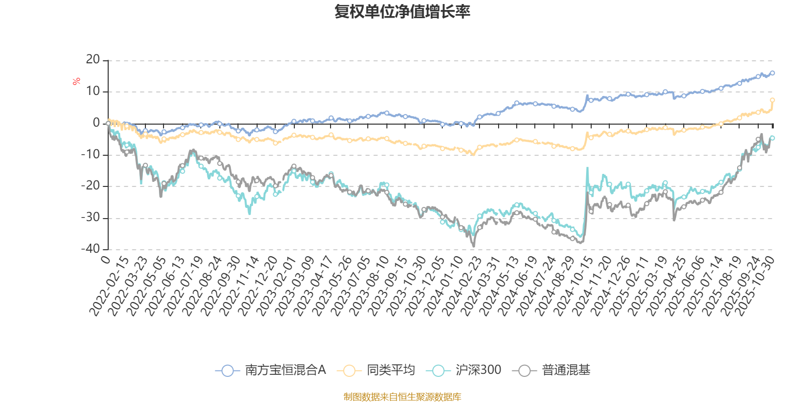 截至10月30日,南方宝恒混合A近三个月复权单位净值增长率为3.51%,位于同类可比基金213/629;近半年复权单位净值增长率为6.65%,位于同类可比基金236/629;近一年复权单位净值增长率为8.15%,位于同类可比基金258/623;近三年复权单位净值增长率为20.53%,位于同类可比基金87/557。